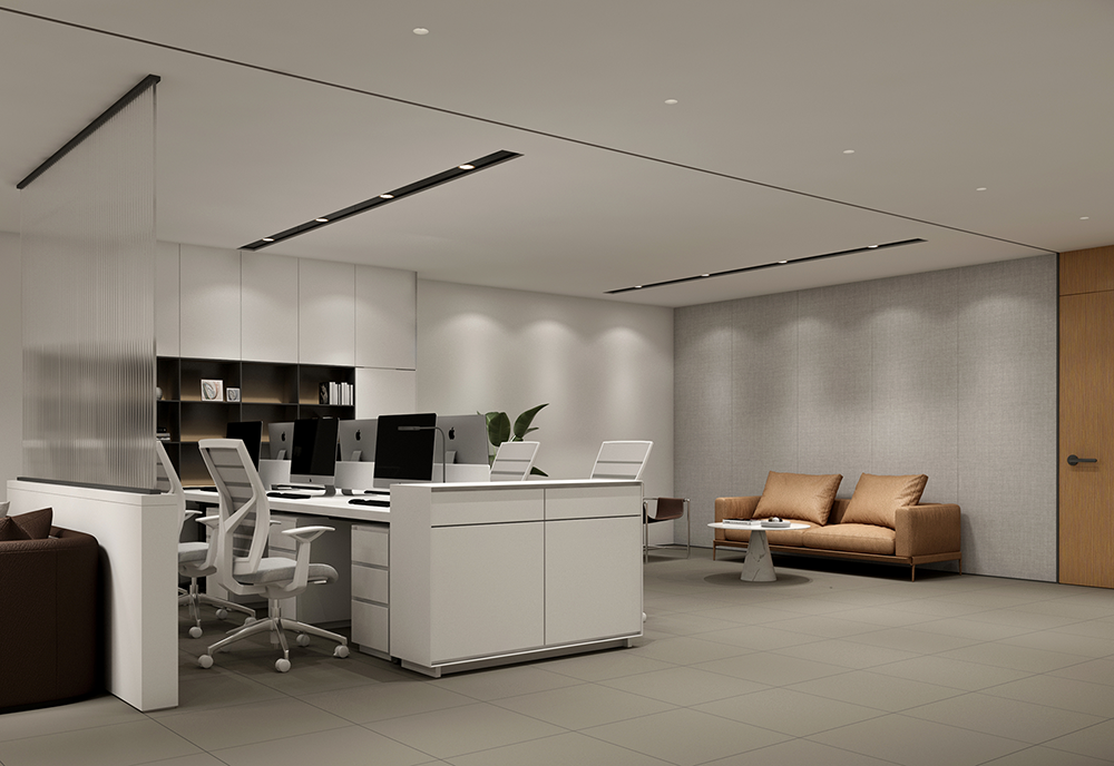 設計理念:通過現(xiàn)代的設計風格,整個辦公室均采用落地窗,保證了充足的光照時間。獨立辦公室和會議室都以透明的玻璃代替了傳統(tǒng)的非透明墻面。陽光穿透玻璃,照射進公共辦公區(qū)域,可以在白天陽光充足的時候減少對人工照明設備的依賴。創(chuàng)造舒適且生態(tài)自然的現(xiàn)代辦公環(huán)境。