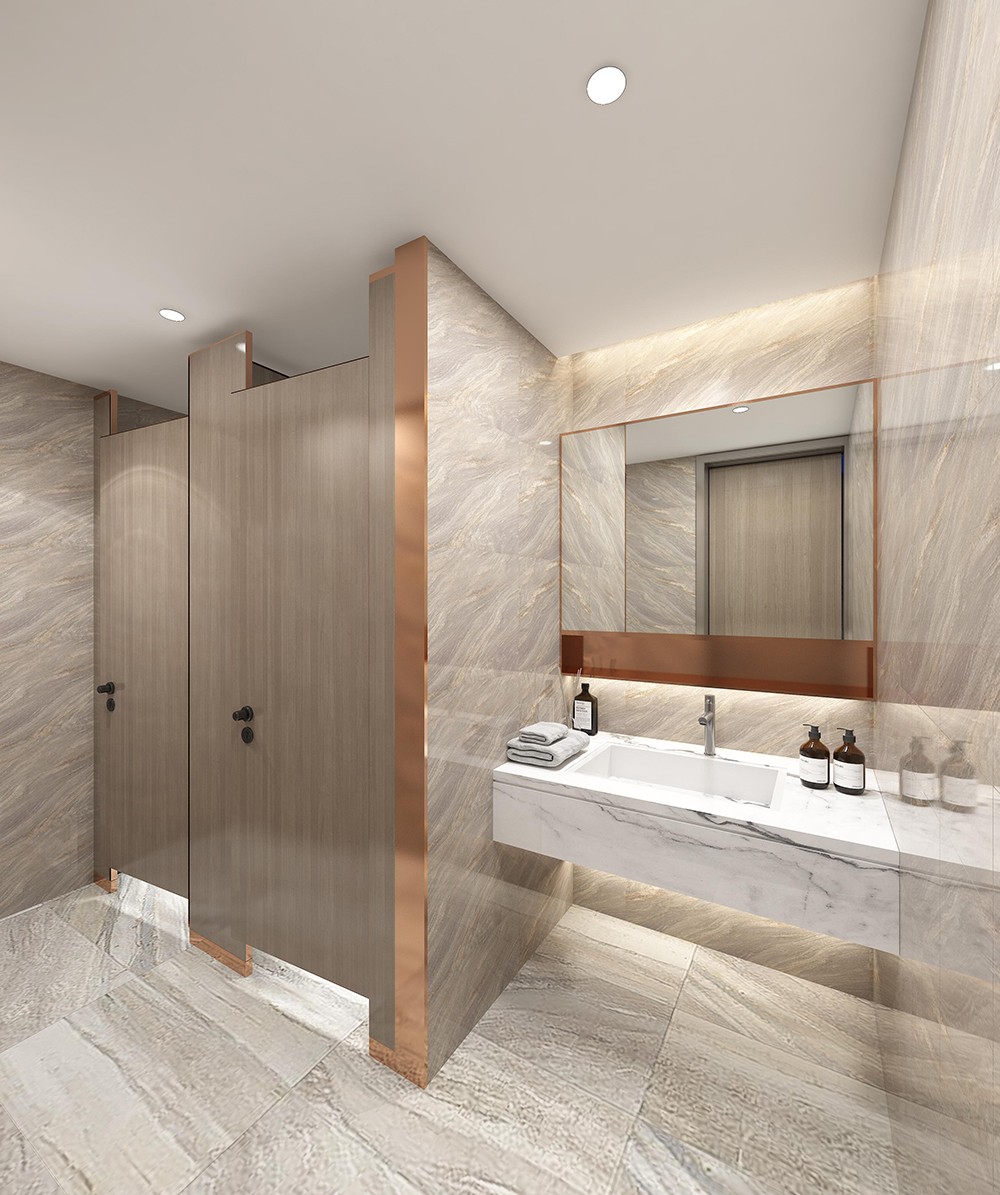 設(shè)計理念:室外開闊的明堂,水流猶如天上之水祥降而下,營造來水環(huán)繞的景觀。圍欄上跳動的線條,與天上的星空相接點點的繁星,流光似水。帶有韻味的用餐環(huán)境,以山作為背景,加上水波紋作天花,這樣可以營造一個山環(huán)水抱的祥和景象,寓意著四海朋友匯聚的地方。