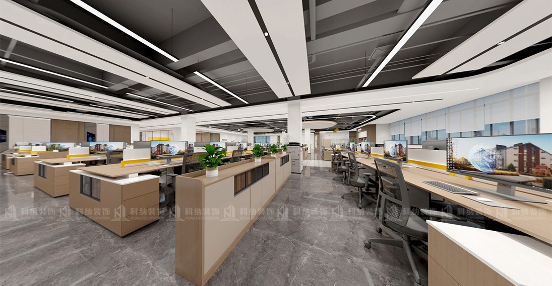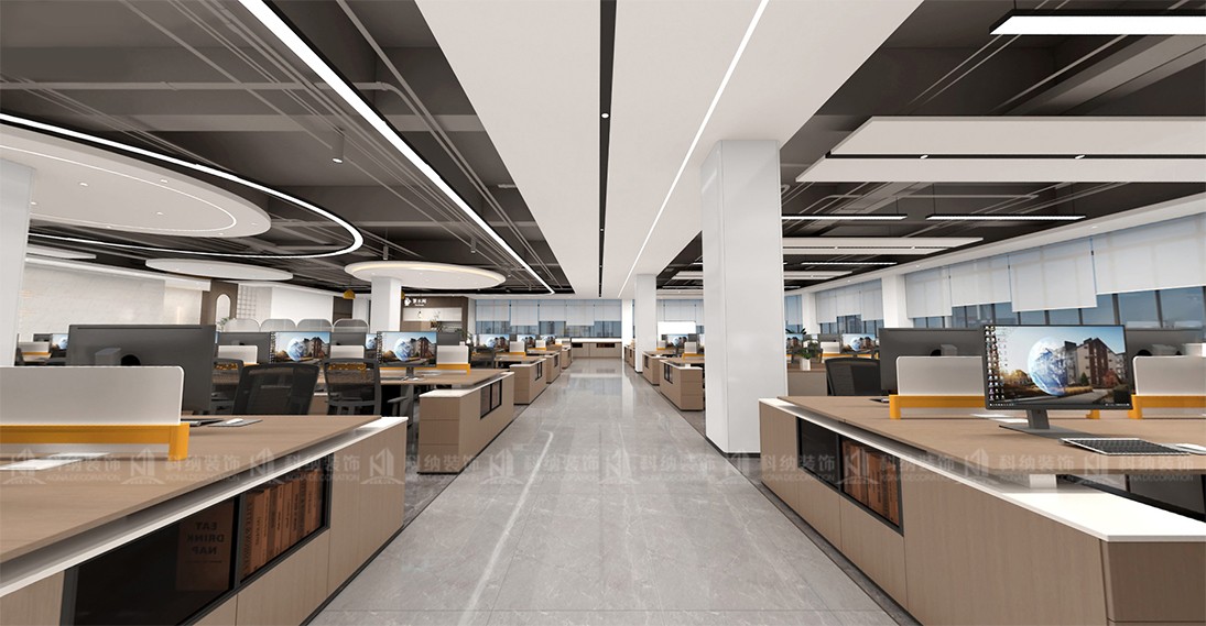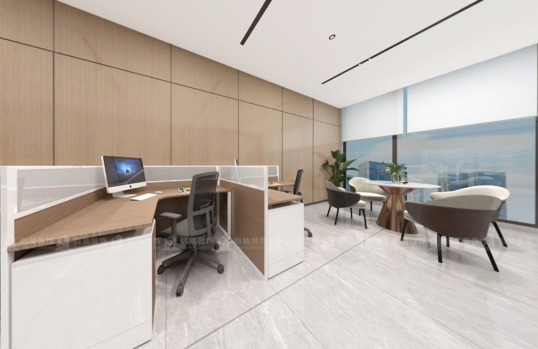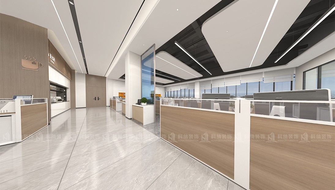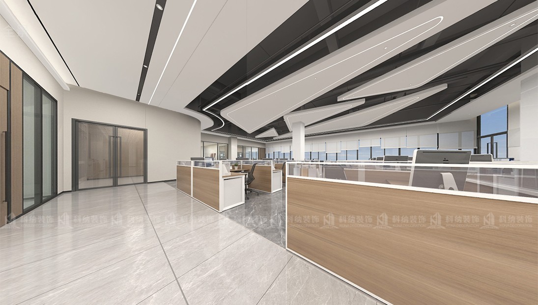 辦公空間的設(shè)計沿用了主體的設(shè)計風格,對光線與工位格局進行精心的設(shè)計布局,構(gòu) 建空間秩序感,為員工設(shè)計舒適的辦公環(huán)境。