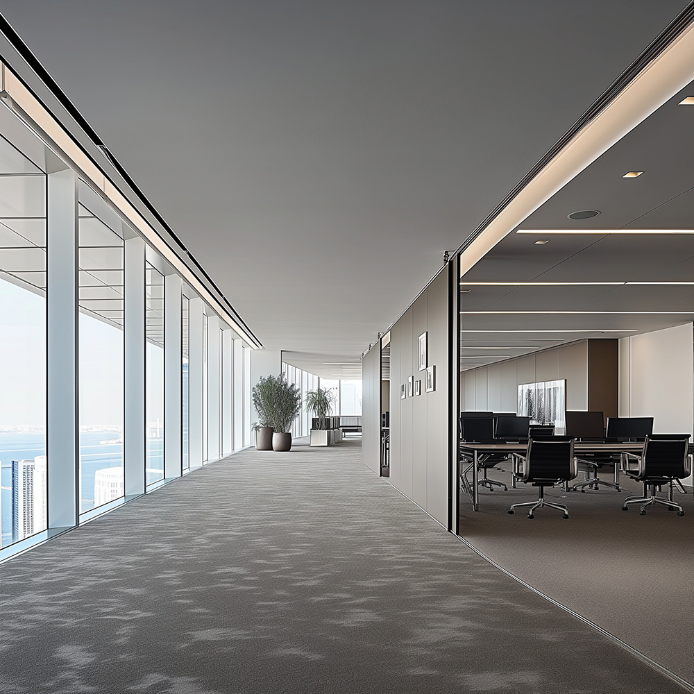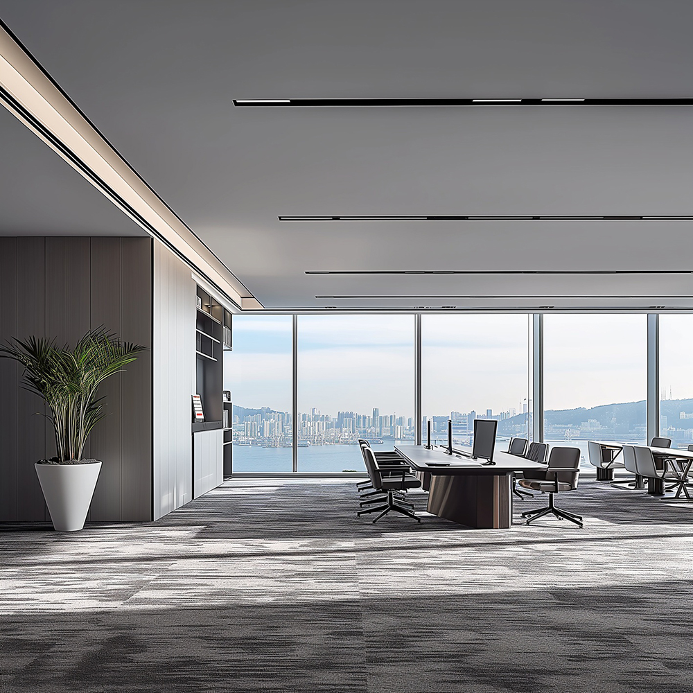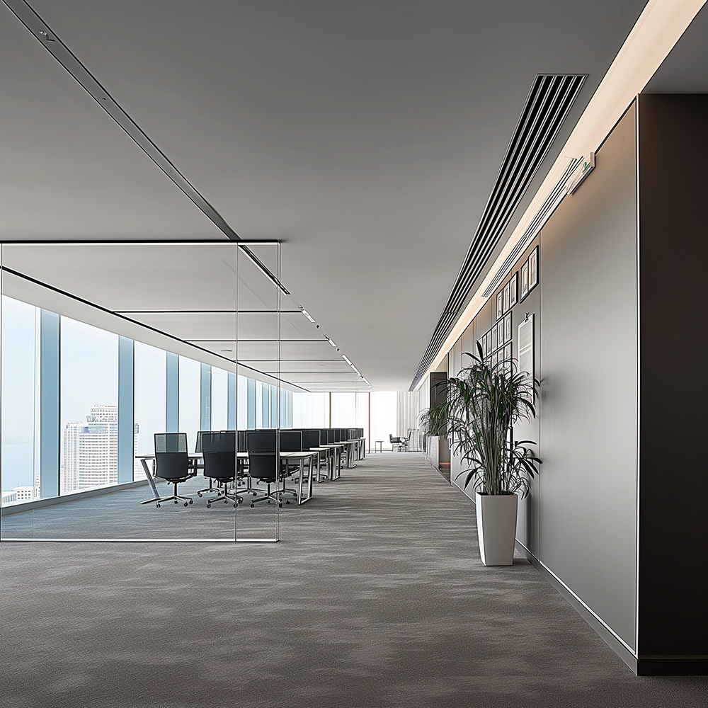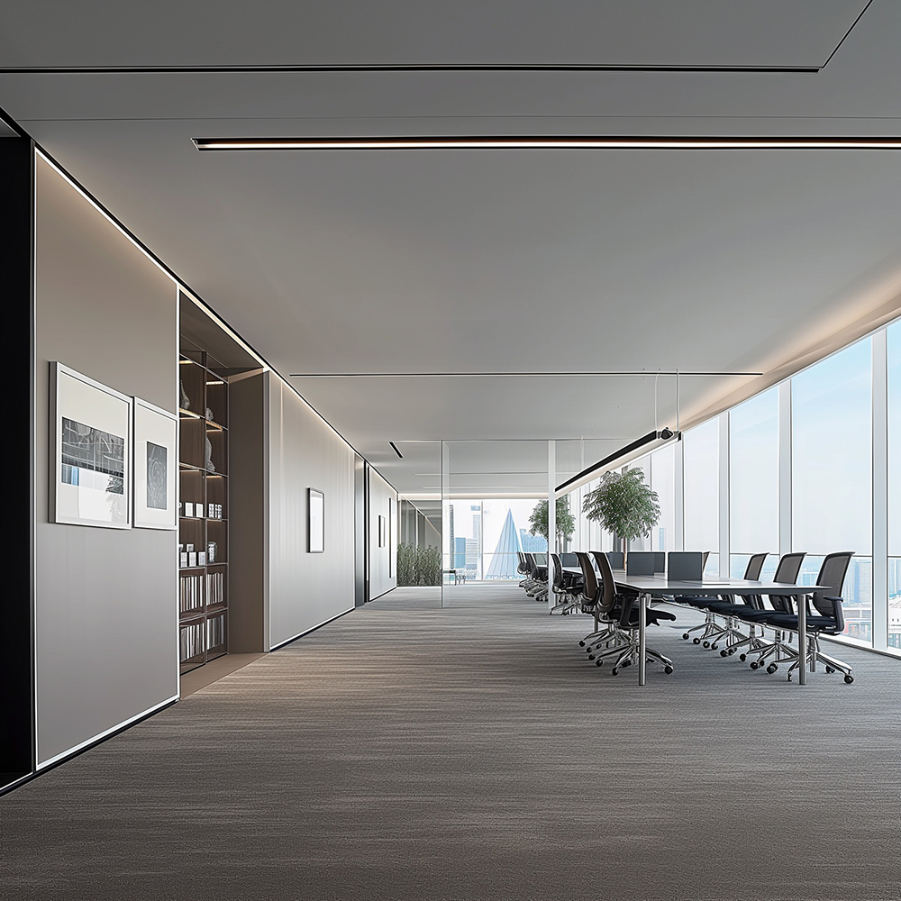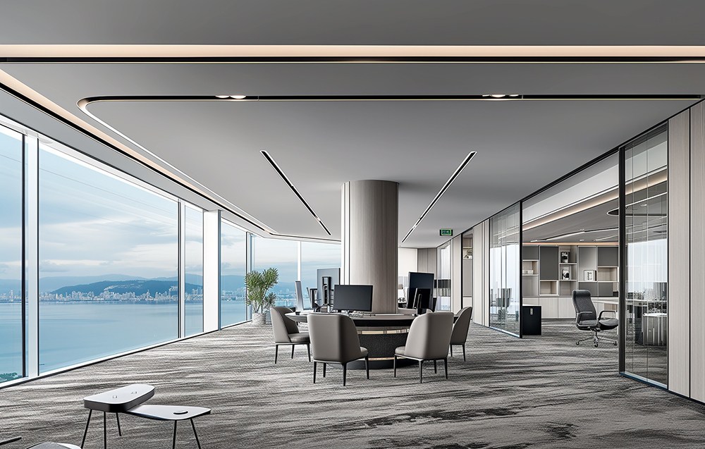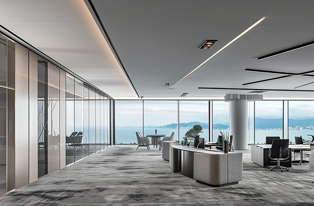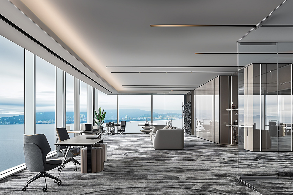 設(shè)計理念:高端寫字樓甲級辦公室的設(shè)計,核心在于“以用戶為中心,科技賦能,綠色可持續(xù)”。通過人性化空間規(guī)劃、智能化技術(shù)整合和環(huán)保材料應(yīng)用,打造一個既高效又舒適的辦公環(huán)境,同時體現(xiàn)企業(yè)品牌形象與長期價值。采用高透玻璃隔斷、可移動家具和開放式辦公區(qū),支持團(tuán)隊協(xié)作與個人專注的切換。