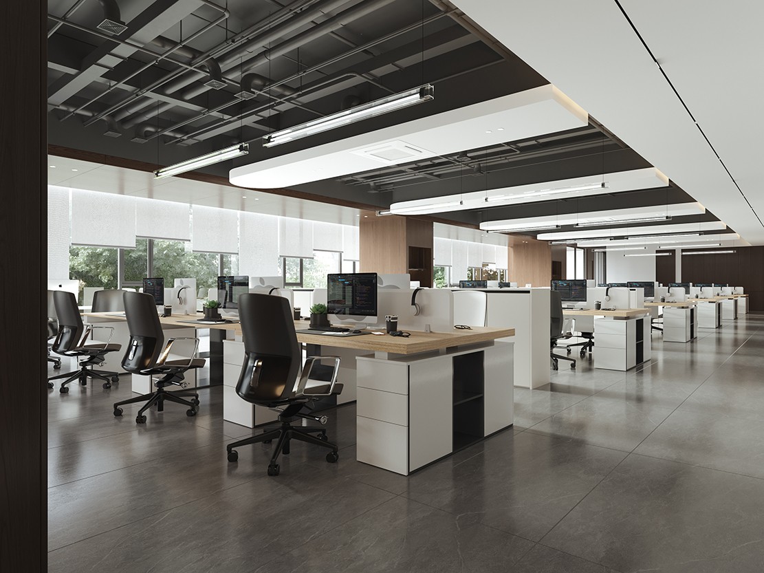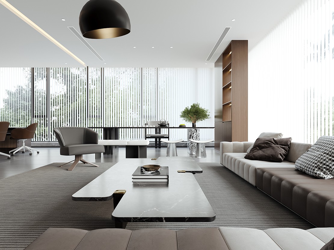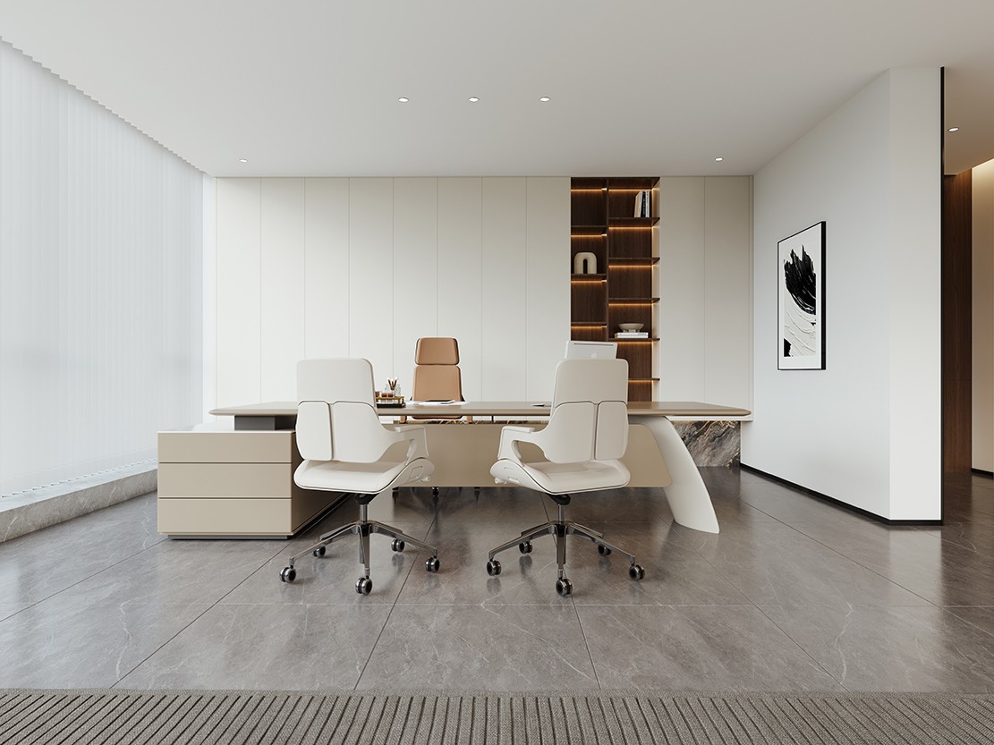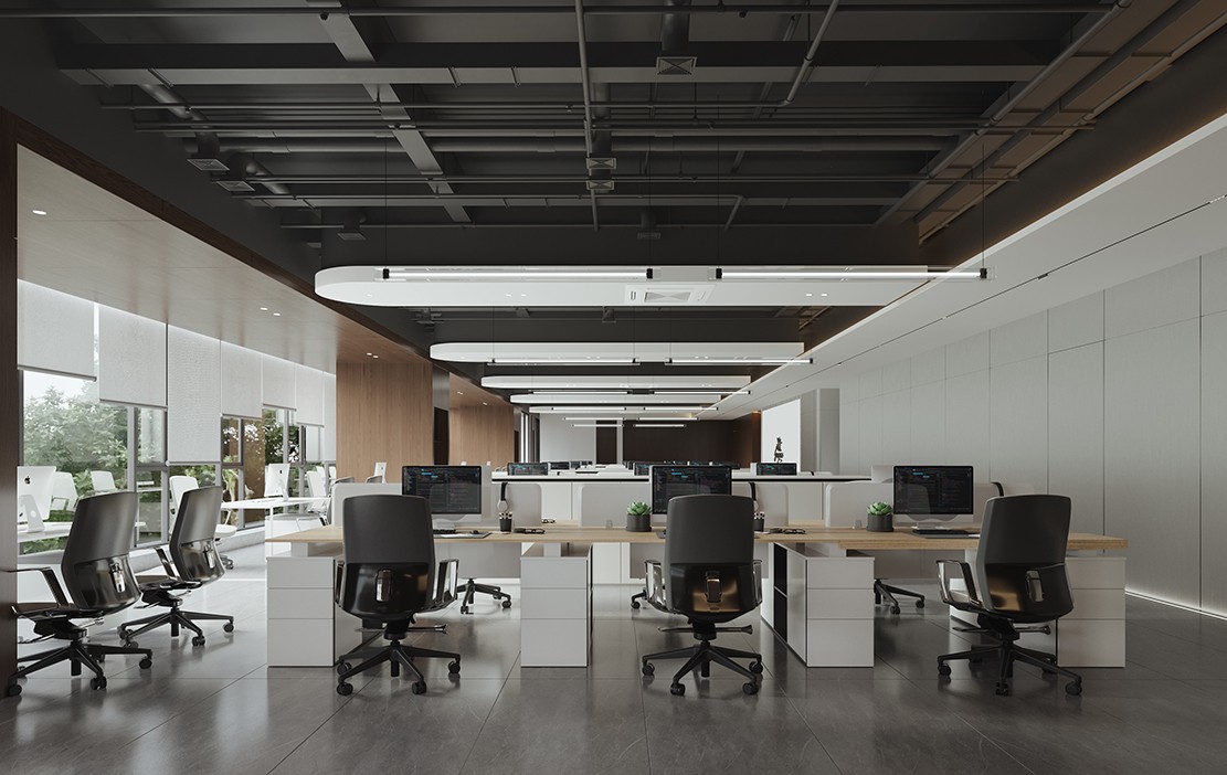 設(shè)計(jì)理念:整體空間以白色和灰色為主色調(diào),采用開(kāi)放式的辦公布局,搭配金屬質(zhì)感的辦公家具和玻璃隔斷,營(yíng)造出簡(jiǎn)潔、現(xiàn)代的科技氛圍。在休息區(qū),設(shè)置了舒適的皮質(zhì)沙發(fā)和精致的茶幾,搭配暖黃色的燈光,為員工提供了一個(gè)放松身心的場(chǎng)所。同時(shí),在辦公室的各個(gè)角落擺放了一些藝術(shù)雕塑和綠植,提升了空間的文化品質(zhì)和自然氣息。