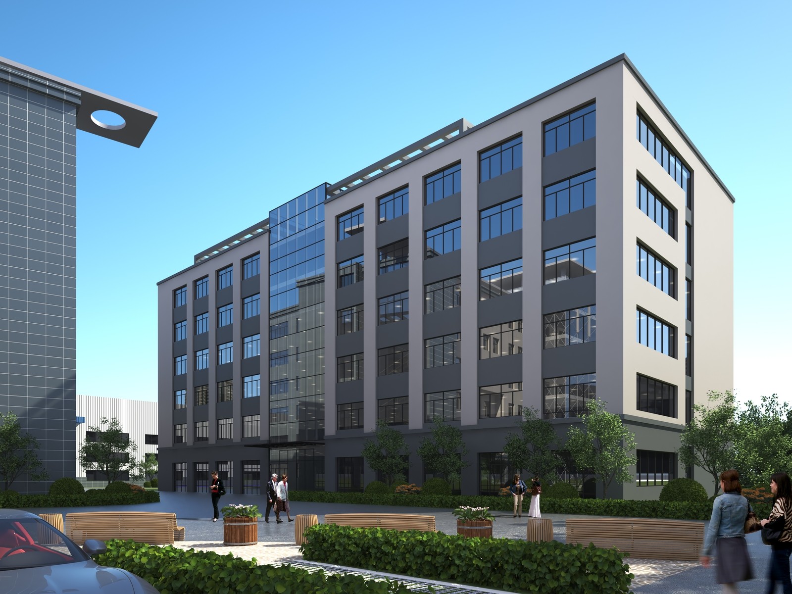 設(shè)計(jì)理念:廠房單體樓棟呈院落式布局,共同圍合出內(nèi)部怡人的園區(qū)環(huán)境,在多個(gè)不同主題的庭院中,人們可以感受到建筑體量的層次感和空間變化,同時(shí)也可以享受到自然光線和景觀的美好,為員工的交流和互動(dòng)帶來更多流通性和便利性,創(chuàng)造盡可能多的城市性開放綠色空間。