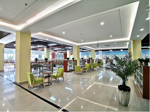 此次項目是廣東科技學(xué)院南城校區(qū)圖書館閱覽室裝修工程。整個圖書館閱讀空間主色調(diào)定為白色、木色、淡綠色,還原清新自然的氛圍,喚醒青春歲月與校園生活氣息。