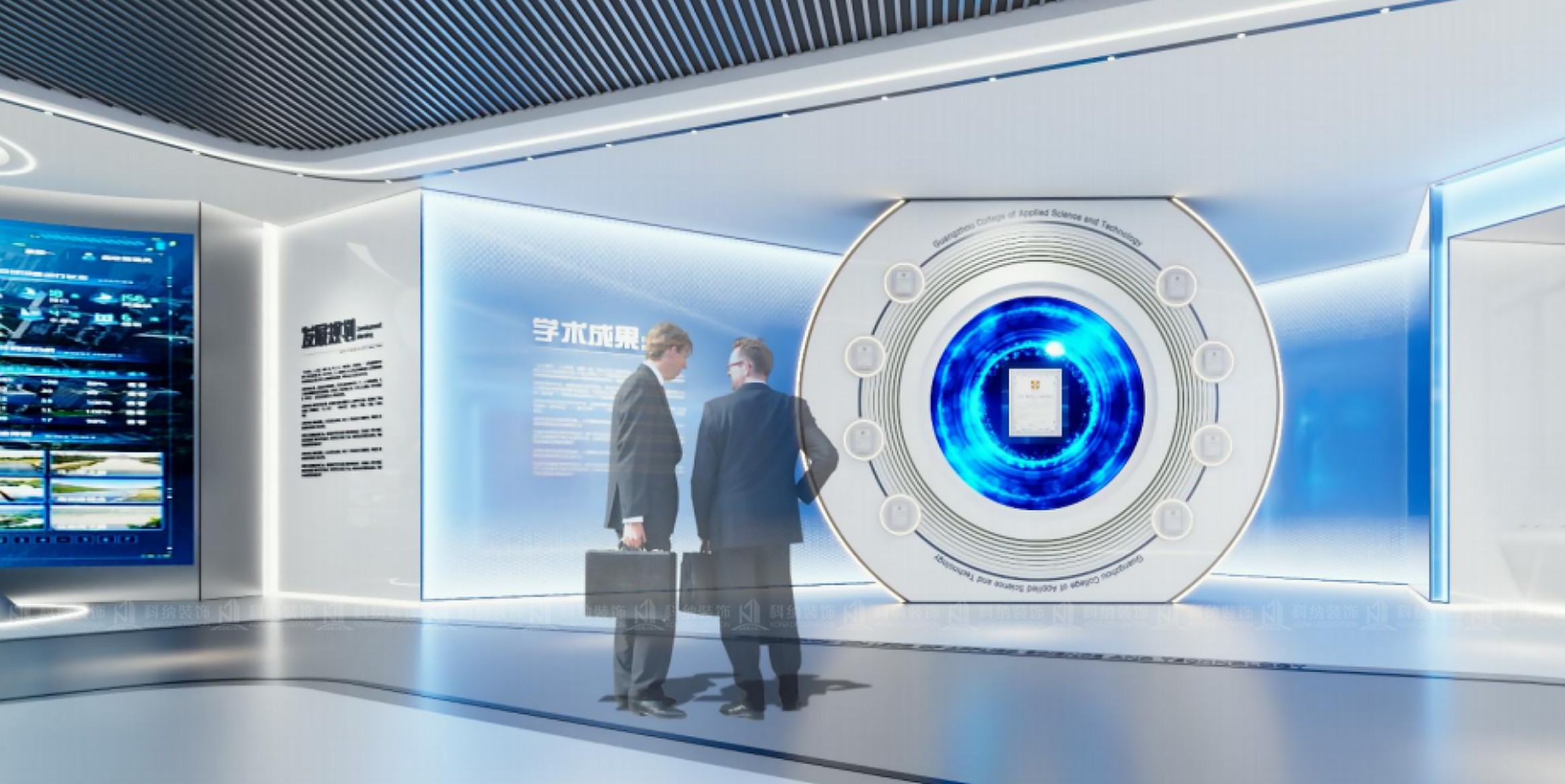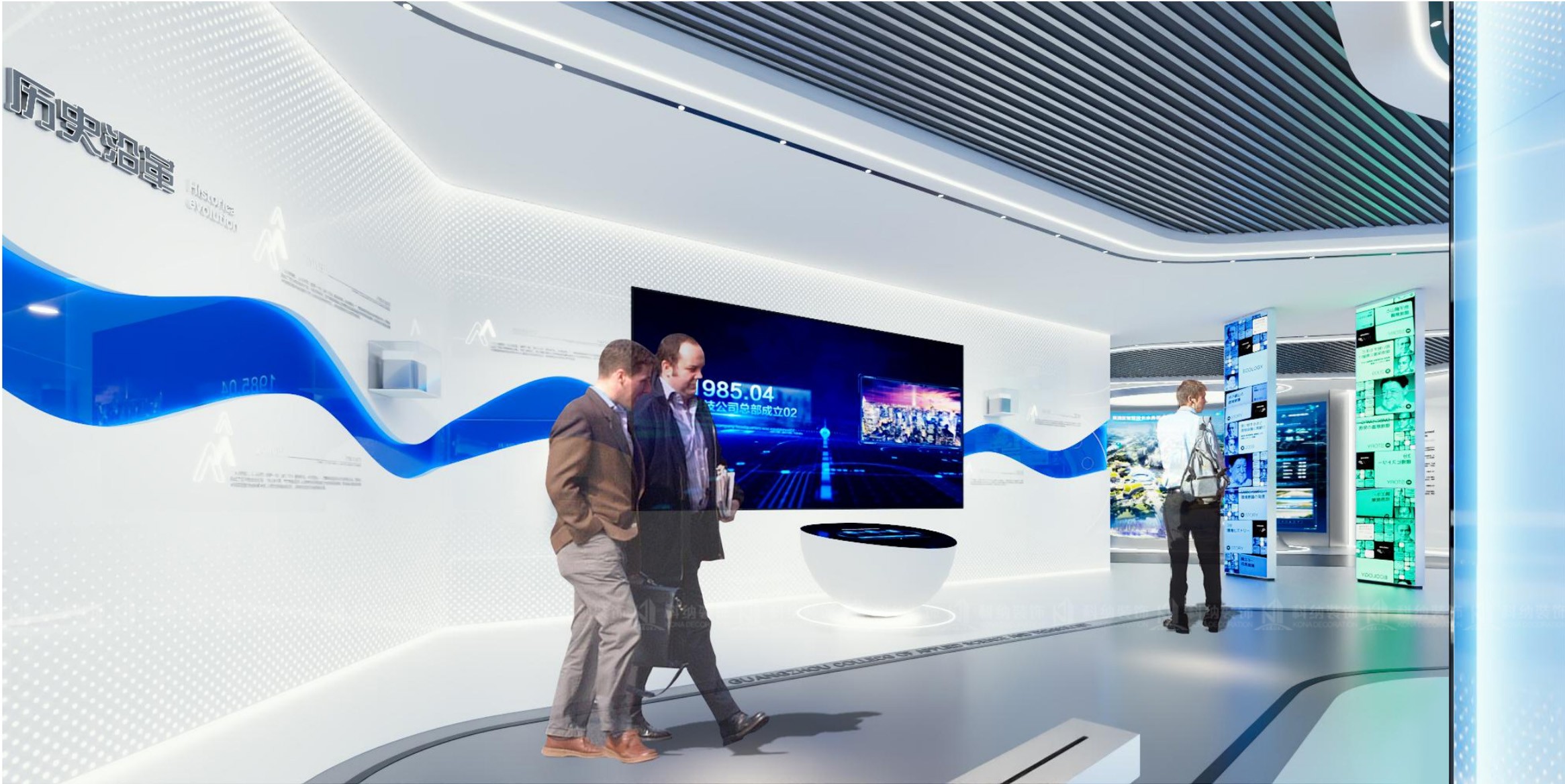 設(shè)計(jì)理念:校史館是實(shí)力的展示館、史料的陳列館、成果的宣傳館,更應(yīng)是全體廣州應(yīng)用科技學(xué)院人的精神家園,面對(duì)不同的受眾。打破傳統(tǒng)的昏暗、深沉的空間設(shè)計(jì)調(diào)性,避免“干篇一律,千館一面”把握舒適原則,結(jié)合建筑本身的空間特 色,因地制宜,運(yùn)用現(xiàn)代國(guó)際化的設(shè)計(jì)手法,讓空間整體美觀、時(shí)尚、和諧。