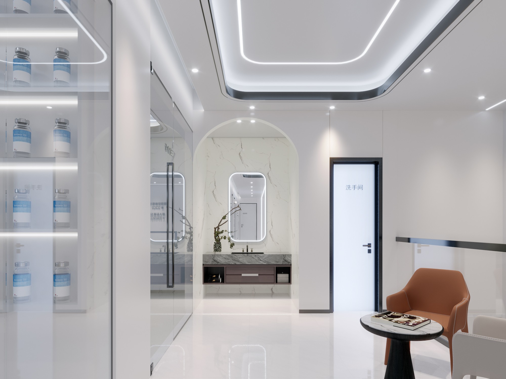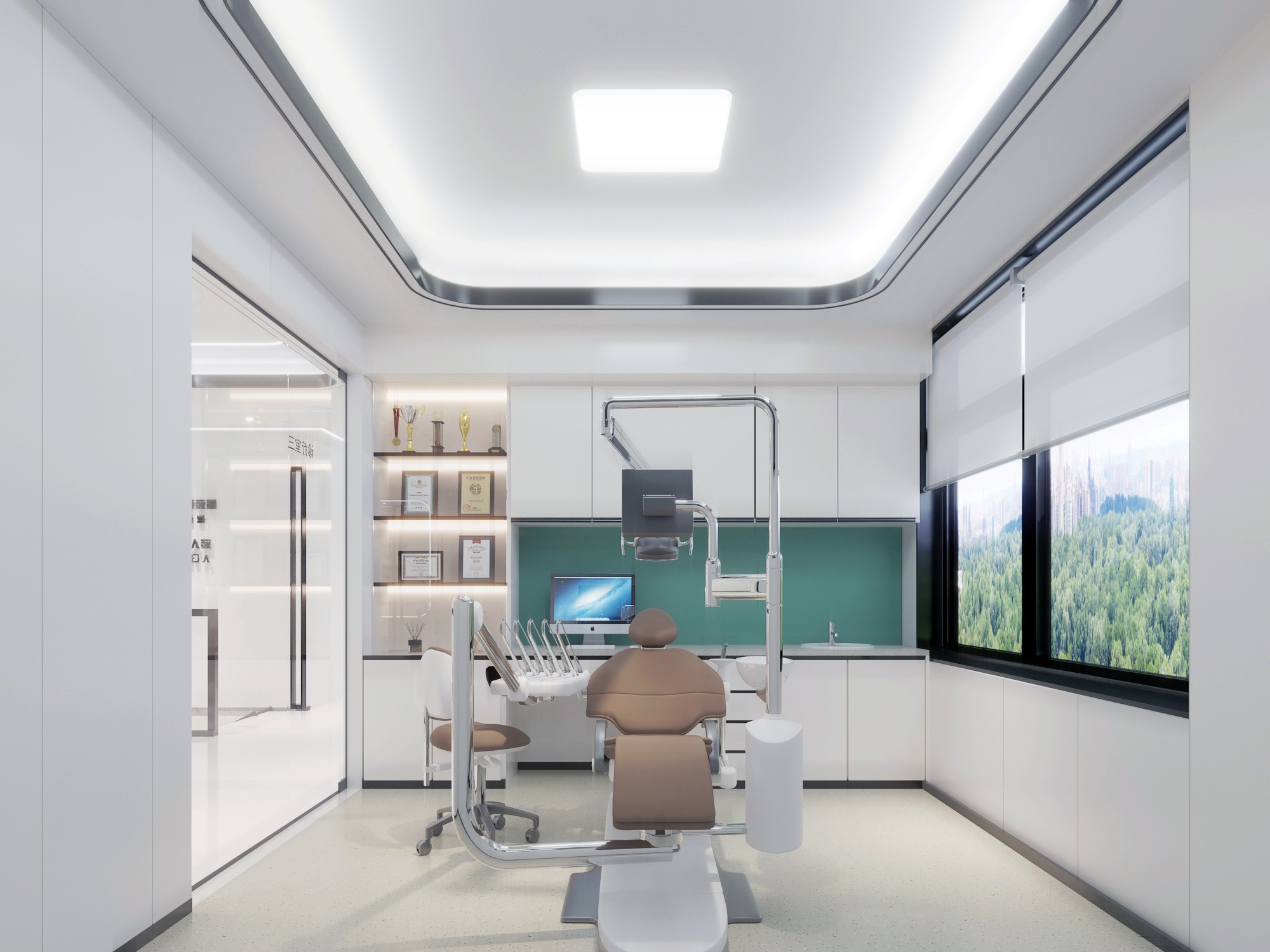 設(shè)計(jì)理念:融合科技質(zhì)感的材料元素,強(qiáng)調(diào)收納設(shè)計(jì)的標(biāo)準(zhǔn)化,營(yíng)造清新簡(jiǎn)潔、光亮通透的空間氛圍,同時(shí)注重空間色彩搭配和細(xì)節(jié)處理,打破傳統(tǒng)醫(yī)療空間形象,呈現(xiàn)出新型高端醫(yī)療空間設(shè)計(jì)趨勢(shì)。將潔白、健康的護(hù)齒理念融合當(dāng)代美學(xué),在細(xì)節(jié)上強(qiáng)調(diào)收納設(shè)計(jì)的標(biāo)準(zhǔn)化,每個(gè)細(xì)微局部遵循“不多余、重質(zhì)感”的裝飾原則,同時(shí)融入科技質(zhì)感的材料元素,從設(shè)計(jì)語言上構(gòu)建。